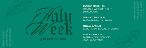 We're so excited to be coming together for Holy Week to reflect on Jesus' death & celebrate His resurrection. Click on any of the events below for more information!
